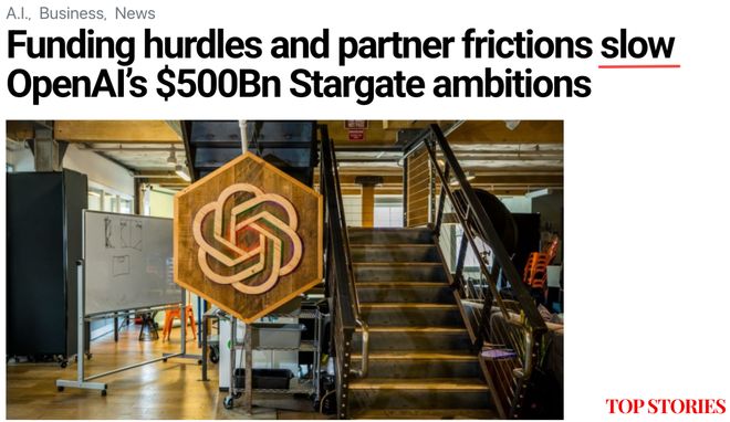 它的核心算力来自Stargate项目——5000亿美元的庞大基建计划,落地周期长达数年。