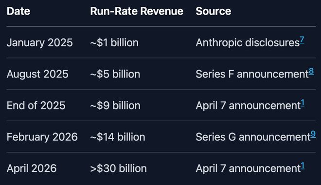 第一个:Anthropic 2026年3月的年化收入(ARR)突破300亿美元。