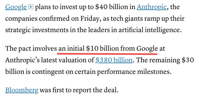 放在一起看,谷歌把对Anthropic的入股,做成了谷歌输不起就买进来谷歌的对冲操作。