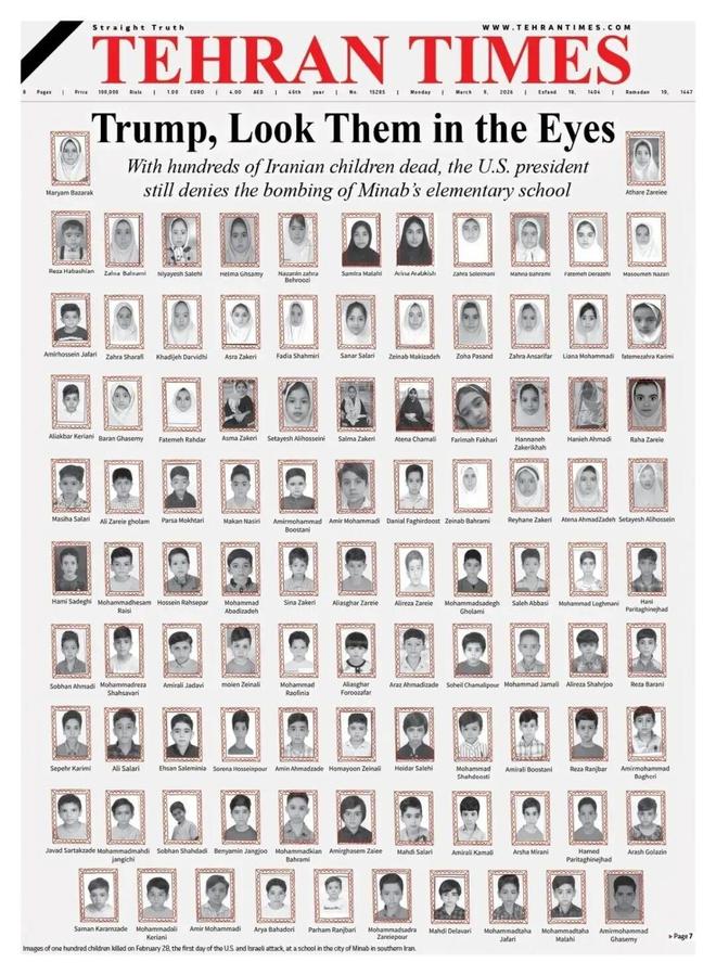 伊朗报纸刊发小学受害儿童遗照 图:央视