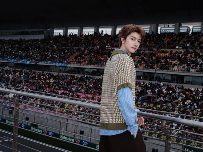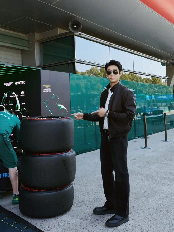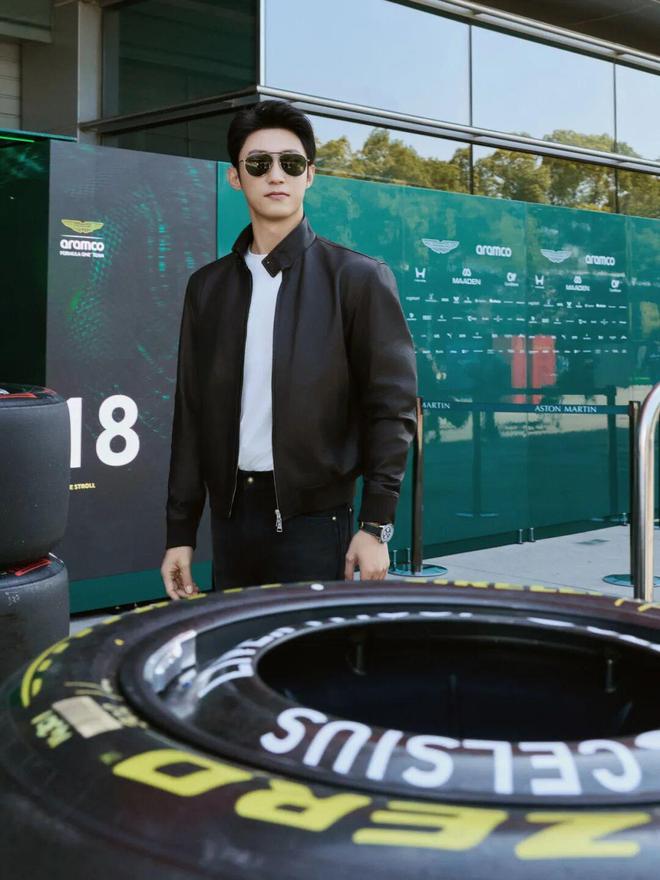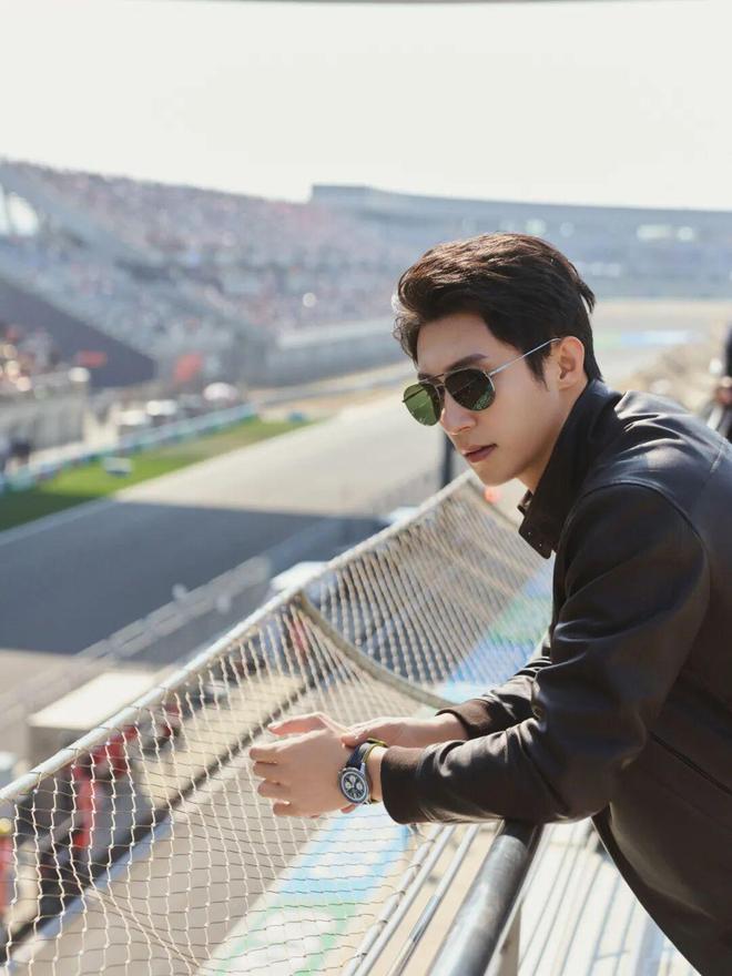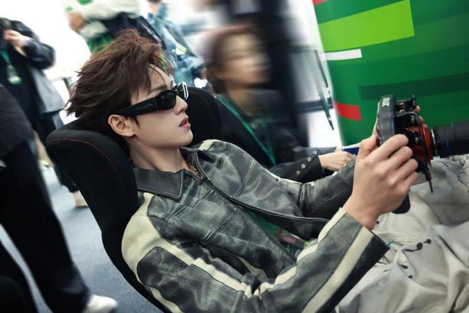 黄景瑜以“林臻东”形象亮相赛场,黑色皮衣保留了林臻东的硬朗形象,同时也与F1赛场的速度感和机械美学相得益彰。