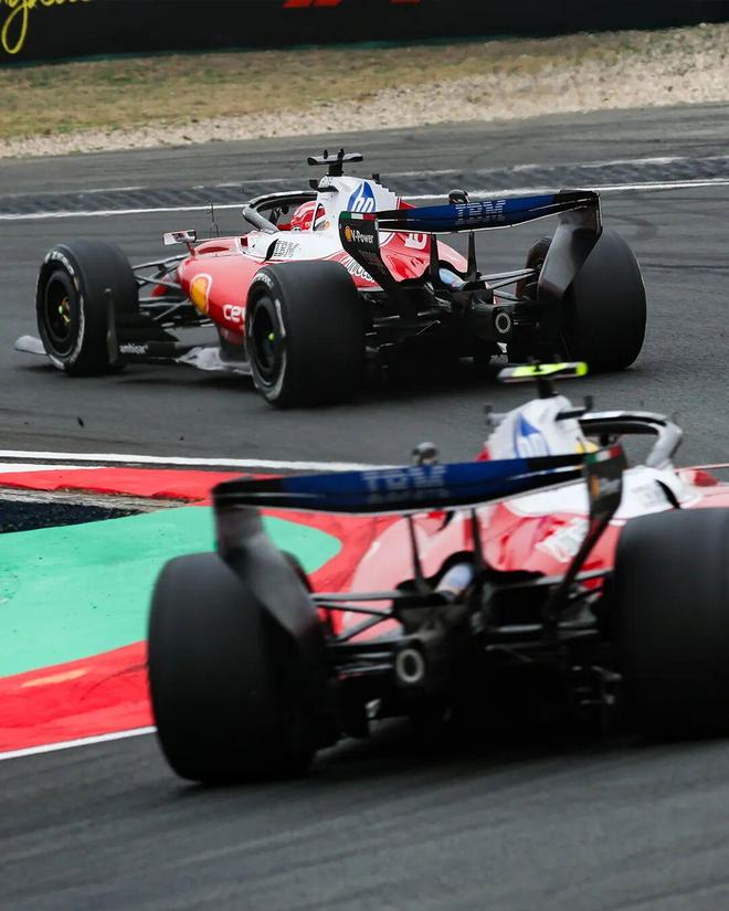 法拉利车队虽然在比赛后期未能缩小与梅赛德斯之间的差距,但他们在赛道上的较量成为了整个比赛中最为精彩的部分。汉密尔顿和勒克莱尔之间的轮对轮对决,以及他们交替领先时险些相撞的紧张瞬间,让车迷们心跳加速,热血沸腾,成为了本站比赛的标志性时刻。