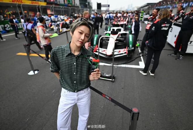 刘雨昕受邀作为哈斯车队的嘉宾来到现场,她的着装巧妙地平衡了精致与休闲,展现出一种恰到好处的放松感。