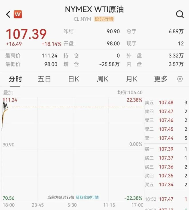 国际油价一度突破每桶100美元