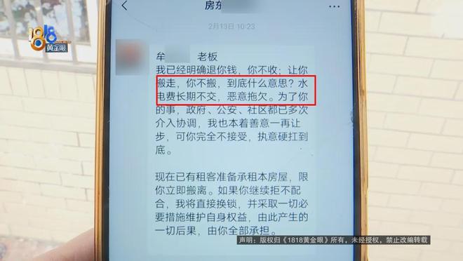 牟师傅指责房东拖欠水电费用,并采取各种措施维护自身权益。