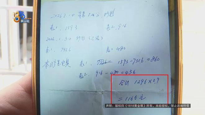 牟师傅称他从一月三日至二月初共支付了1166元的电费。