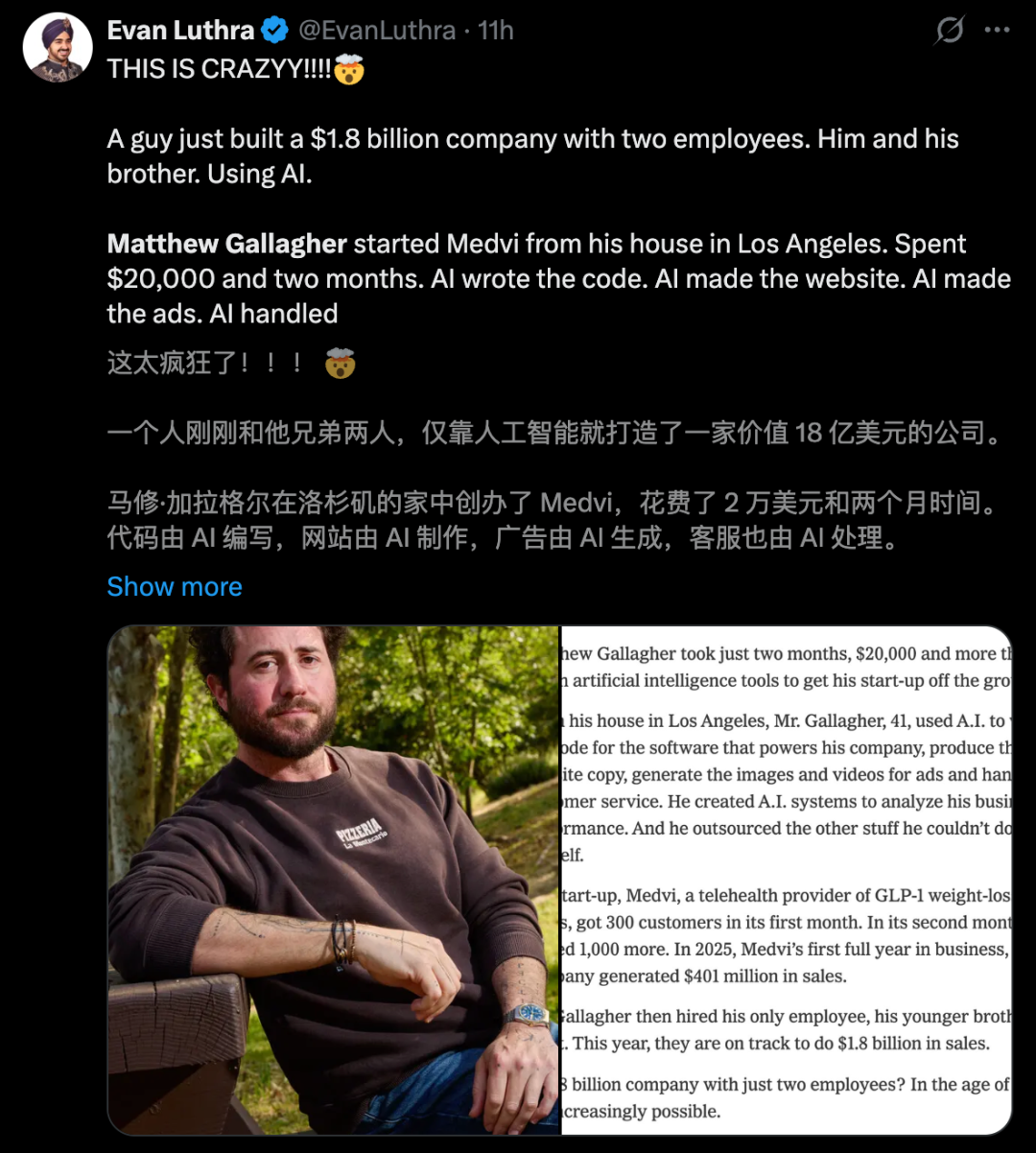 Medvi的案例之所以引发巨大关注,在于它验证了一个此前只停留在预言阶段的命题: