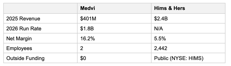Medvi的财务数据显示,目前公司日收入超过三百万美元,净利润率达到百分之十六点二,达到了六千五百万美元之多。