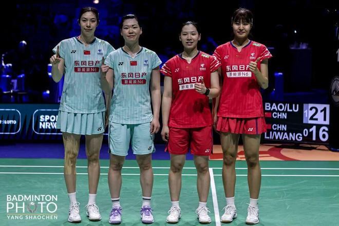 女子双打决赛中,中国队两对新组合再次相遇。鲍骊婧/罗徐敏以21比16的比分两次战胜李怡婧/王漪朵,赢得她们搭档以来的第一座冠军奖杯。尽管两对都是新搭配,但在比赛中鲍骊婧/罗徐敏显示出更强的默契和节奏控制能力。