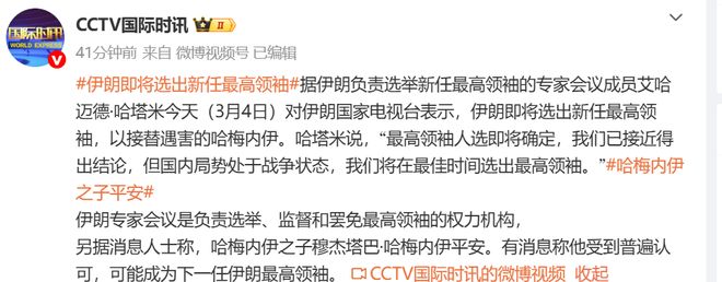 今天(3月4日),伊朗国家电视台报道了一则消息:伊朗专家会议成员艾哈迈德·哈塔米指出,新的最高领袖人选即将确定,并将接替已故的哈梅内伊。