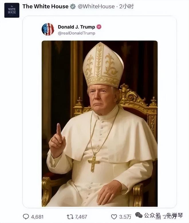 记得以前,特朗普说他想当教皇,后来干脆自己P了一张图,他当上了新的罗马教皇。