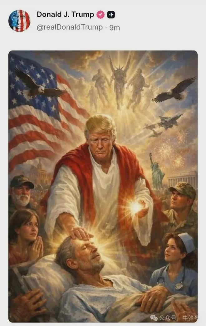 现在,教皇已经满足不了他,特朗普直接成了耶稣。