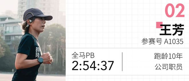 王芳是一名拥有十年跑龄的老将,并且还是耐克黑马的一员。她在2023年的上海女子半马中以1小时31分的成绩获得了上马直通名额;尽管这两年未能获得参赛资格,但她依然在这一段时间内将自己的半程马拉松个人最佳成绩刷新到了1小时24分。