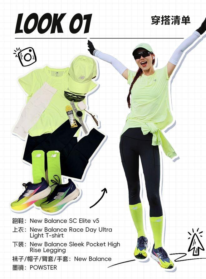 当天气适宜时,背心、短裤和压缩袜成了她的日常跑步装备;近期,她还迷上了一款既能防晒又能保暖的手臂套。此外,帽子和墨镜也是她整体装扮中不可或缺的配饰之一。考虑到3月是春意盎然的季节,她特意选择了一套充满春天气息的新绿系装备,“看起来生机勃勃,仿佛在公园里跑步时能与植物一同进行光合作用。”