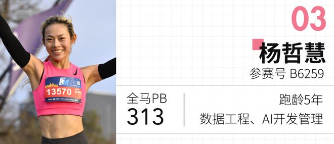 杨哲慧是首次参加上海女子半马的选手,她目前居住于澳洲墨尔本。作为一名数据工程师兼AI开发管理人员,在疫情期间开始跑步,并在墨尔本浓厚的跑步氛围以及身边高手云集的环境中获得了不少激励,逐渐提高了个人成绩——全马PB跑到了3小时13分,而半程马拉松的成绩也达到了1小时33分。这次回到家乡参赛,她对赛道上的奔跑充满期待:Plan A是期望能跑进直通上马的标准;Plan B则是力争突破1小时30分的大关。