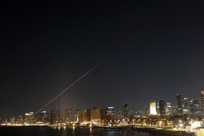 2026年3月3日,在以色列特拉维夫,铁穹防空系统拦截了伊朗发射的导弹。这被认为是自美国与以色列联合空袭后伊朗报复行动的一部分。