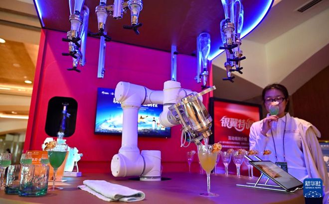 3月25日,一款调酒机器人在博鳌亚洲论坛大酒店为参会人员调酒。博鳌亚洲论坛2026年年会期间,多款智能机器人集中展出。从分论坛现场展示新技术的人形机器人,到会场内外全天候服务的水陆空智能清扫机器人、迎宾服务机器人等,多元智能设备全方位保障会议顺利进行,以科技力量推动智慧办会。