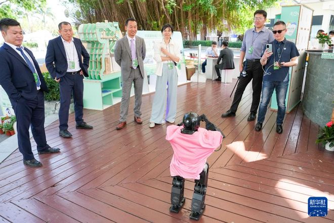 3月24日,人形机器人在海南省琼海市博鳌镇东屿岛与观众互动。博鳌亚洲论坛2026年年会期间,多款智能机器人集中亮相。从分论坛现场展示新技术的人形机器人,到会场内外全天候服务的水陆空智能清扫机器人、迎宾服务机器人等,多元智能设备全方位保障会议顺利进行,以科技力量促进智慧办会。