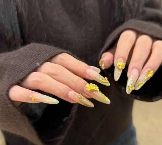 周大福等头部品牌的小件金饰,甚至老铺黄金的金条都成了美甲店的“高端原料”,有消费者表示,愿意花数千元、上万元打造“黄金甲”。