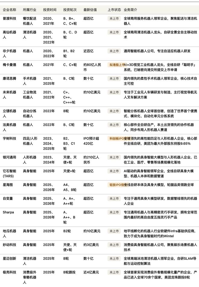 在美团的整张投资版图里,具身智能是美团布局最早、投资企业最多,且覆盖最全的一个赛道。从餐饮配送机器人、清洁机器人、工业物流机器人、仓储分拣机器人,美团几乎覆盖了机器人赛道所有可落地的主流场景。截至目前,美团在具身智能领域至少投资了 16 家企业,其中 3 家已开始推进上市进程。