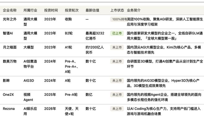 AI 领域投资,对美团来说,大概分为两类,一类是通用大模型,另一类则是垂直应用类。美团大模型起步阶段,接连出手多家大模型企业,并与国内头部的大模型企业保持密切的联系,也算是给自己的技术库储备好 AI「弹药」。