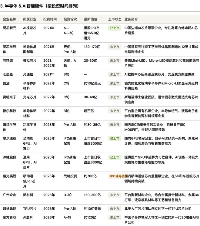 摩尔线程、沐曦股份、紫光展锐、爱芯智元……从 GPU 算力到 AI 视觉芯片,从功率半导体到移动通信芯片,美团的投资触角遍布在 AI 基础设施的各个方向,形成了一张相当完整的算力版图。