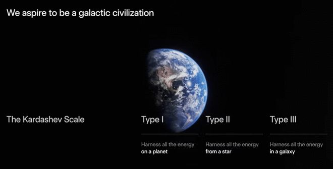 我们想成为一个能把飞船扩展到银河系的文明。任何人都可以去任何他们想去的地方。那才是史诗级的未来。在月球上建城市,在火星上建城市,让整个太阳系遍布人类的足迹,再发送飞船去往其他恒星系统,这听起来就是最好的未来。