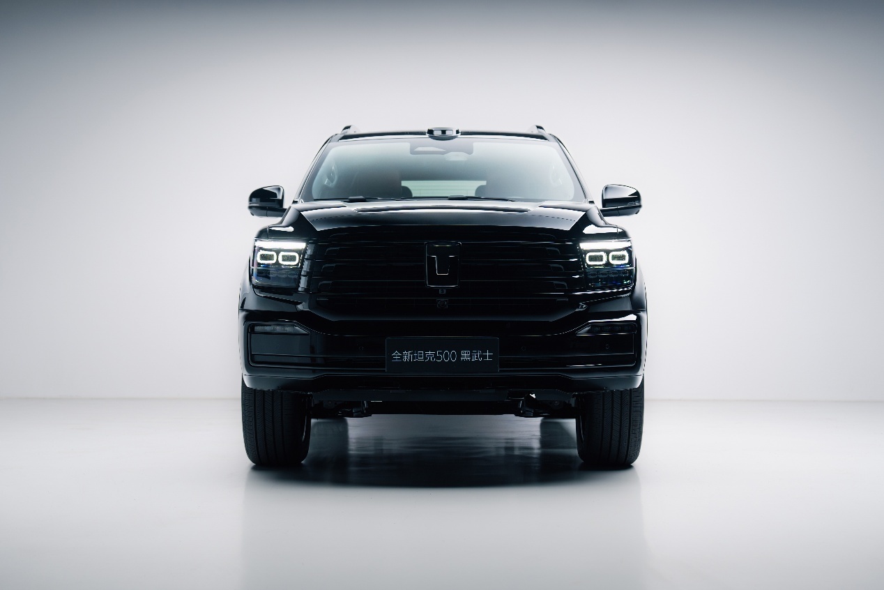新款坦克500黑武士车型将东方美学与硬朗气质完美结合,在车身从头到尾进行了全方位黑色涂装升级。其独特的星眼式前大灯,采用了不同于市面上常见的只对灯罩进行简单的黑色处理的方式,而是使用了原厂内部的黑化技术,既保证了良好的照明效果,又增添了深邃且犀利的气息;与之配合的是黑色中网设计,通过大面积的黑色覆盖来增加车身视觉宽度,不经意间流露出一股霸气。此外,红色卡钳搭配黑色轮毂和行李架、侧踏等全车黑化装饰条,为整车增添了不少运动感,成为该版本的独特标志,完美勾勒出车辆轮廓,并在硬派风格的基础上增添了精致元素。