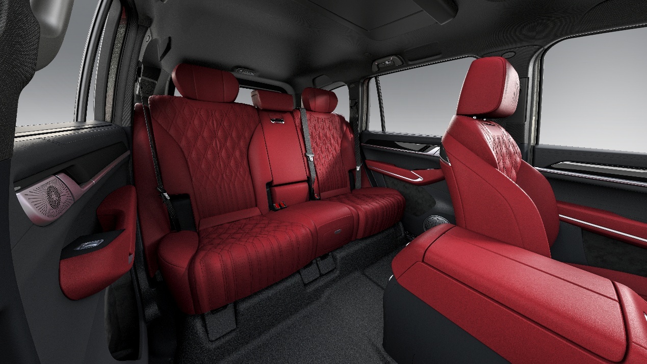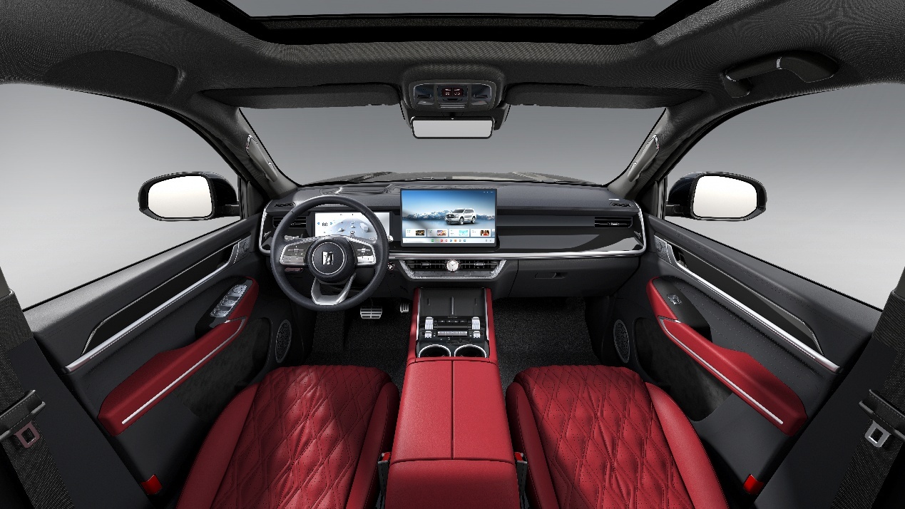 内饰方面,“黑甲赤韵”的设计理念贯穿始终。定制的深红色Nappa真皮座椅结合菱形绗缝工艺与全黑色车顶形成鲜明对比,在营造豪华氛围的同时,也为即将到来的马年带来了吉祥的寓意。