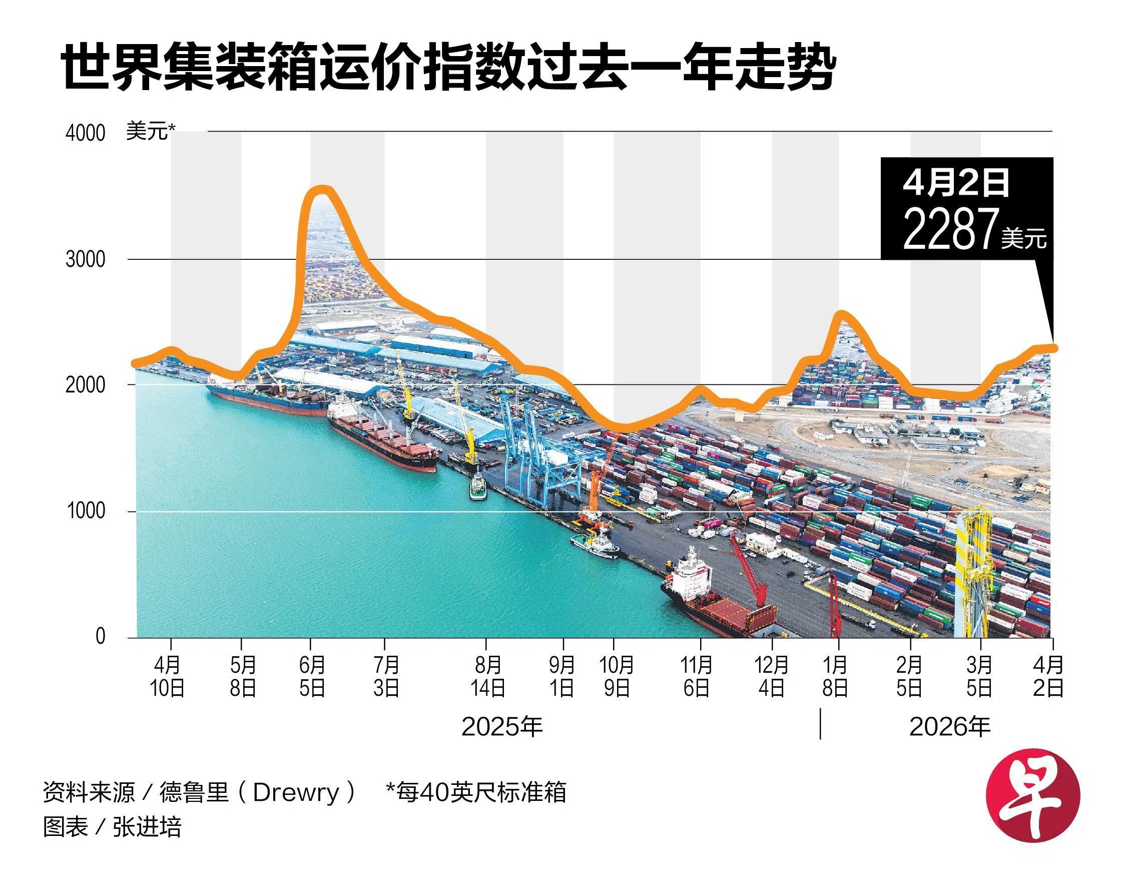 海运咨询机构德鲁里统计的世界集装箱运费指数显示,在美国与伊朗发生战争前,每40英尺标准箱的运价为1899美元;而截至4月2日,则攀升至2287美元,涨幅约为20%。亚洲内部航线的集装箱费用也从552美元增长到865美元,增幅高达57%。