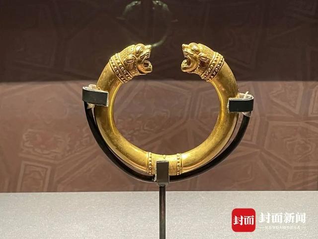 一件代表阿契美尼德王朝的艺术珍品,黄金狮首授权环,在此次展览中尤其引人注目。这种权力象征物在当时具有重要的政治意义,狮子的形象更是伊朗文化中的重要符号之一,代表着力量与王权。