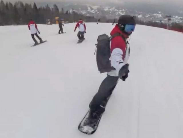 教练牛天然提供的一段视频显示了每一名运动员都背着物资包,内有备用物品、水和补充能量的食物等必需品。大部分队员穿着红色的中国队队服,在雪道上显得非常灵动自如。