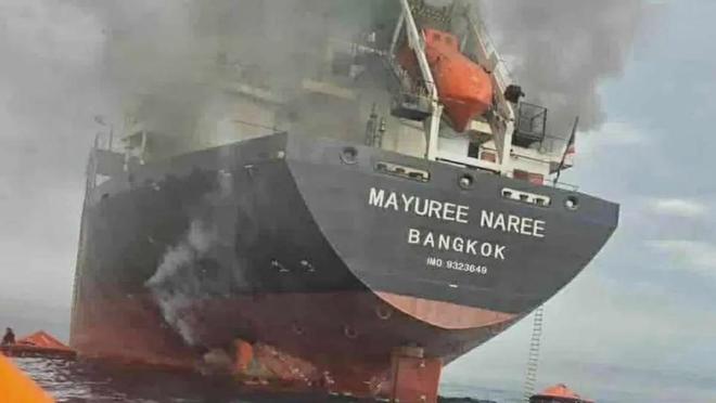 一艘泰国货船遭遇炮火袭击。