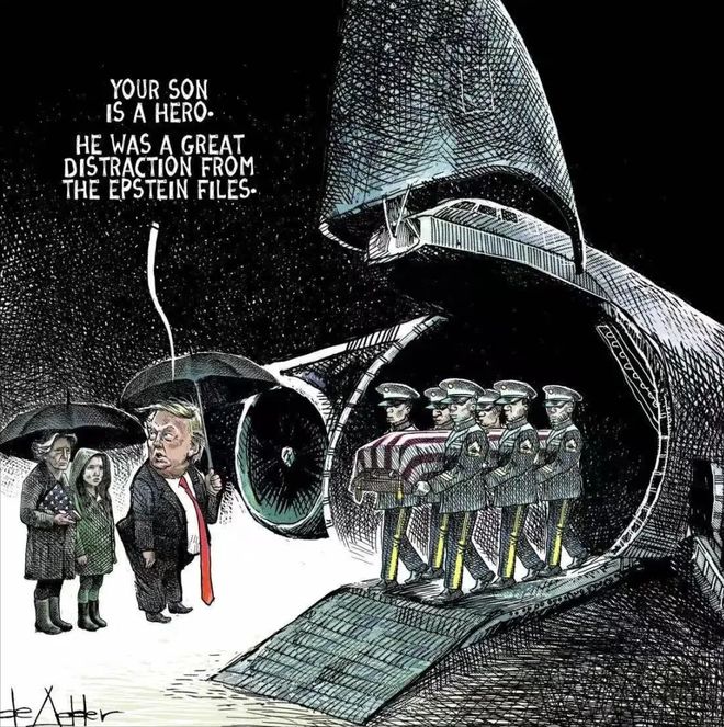 特朗普迎接阵亡美军士兵遗体 漫画图