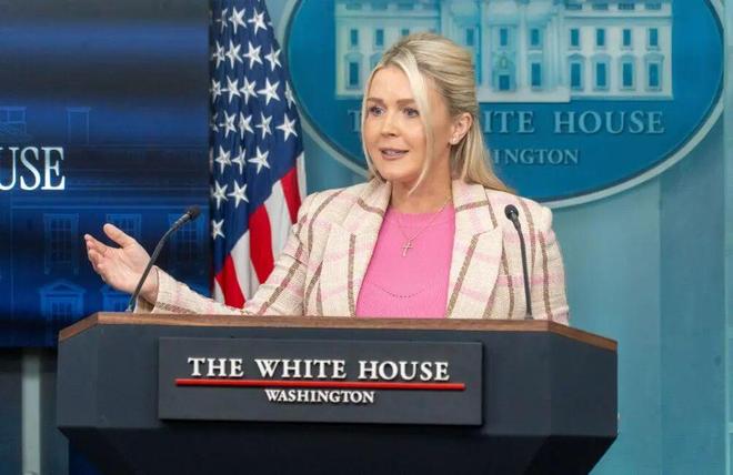 3月10日,在美国首都华盛顿,白宫新闻秘书莱维特出席记者会。莱维特说,美国海军目前没有护送任何油轮或其他船只通过霍尔木兹海峡 图:新华社