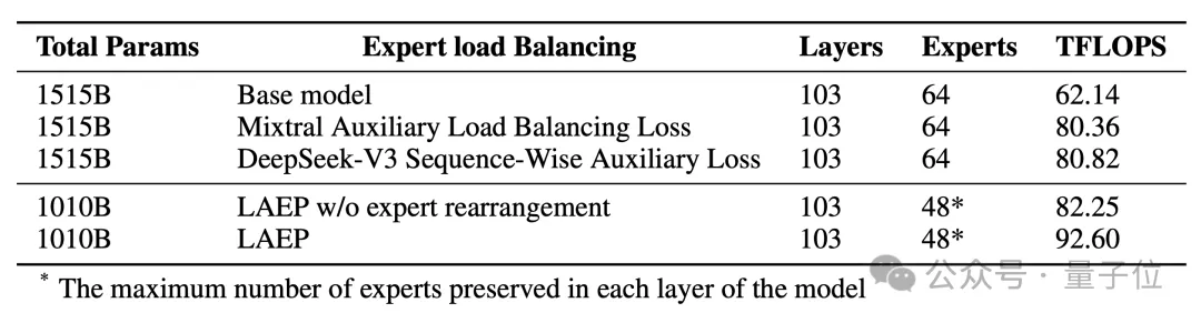 Yuan3.0 Ultra提出了Layer-Adaptive Expert Pruning(LAEP)算法来解决这一问题。该算法通过统计专家负载信息动态地调整模型结构,优化算力分配。