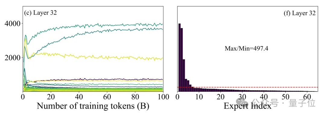 - 初始过渡期:在早期预训练时,由于随机初始化的影响,每个专家所接收的token数量差异显著;