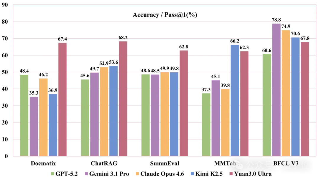 Yuan3.0 Ultra在多模态文档理解评估中的表现超越了Claude Opus 4.6、Gemini 3.1 Pro等前沿模型,在图文解析与表格语义分析方面展现出了卓越的能力。