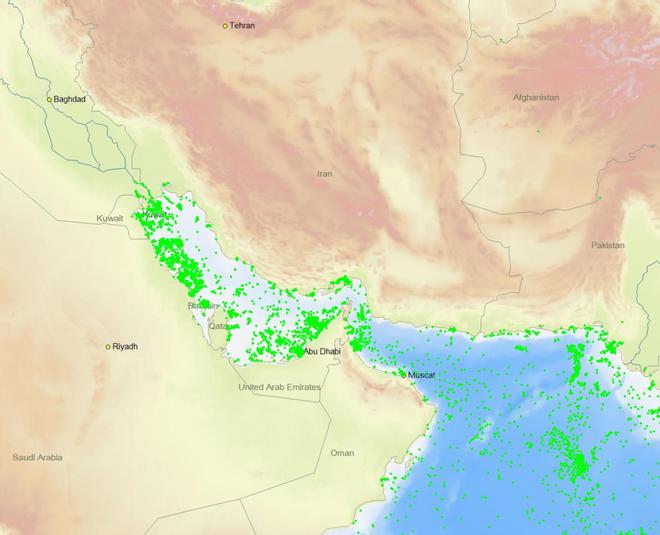 船舶跟踪数据显示,当地时间3月6日,过航霍尔木兹海峡的船舶数量较此前大幅减少 搜船网