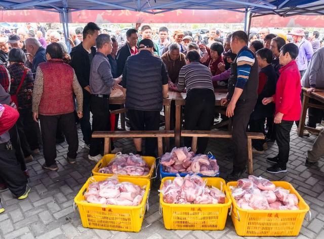 在龙岗村,“太公分猪肉”以往分的是烧肉,如今逐渐演变为分新鲜猪肉,男女都有份,延续了“太公分猪肉——人人有份”的习俗。