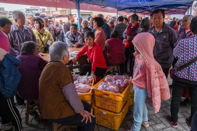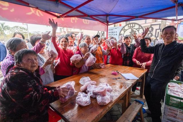 这是自1949年以来,龙岗村举办的第三届“太公分猪肉”活动,共覆盖14个经济社,惠及长者2195人,最长寿的长者有106岁,每人分得约2斤,几乎村民家家户户都能分到。龙岗村党委书记、村委会主任曾宝乾介绍道,这些猪肉由村集体统一购买,经过严格筛选和精心分切,资金则由村委会、爱心村民共同筹集。