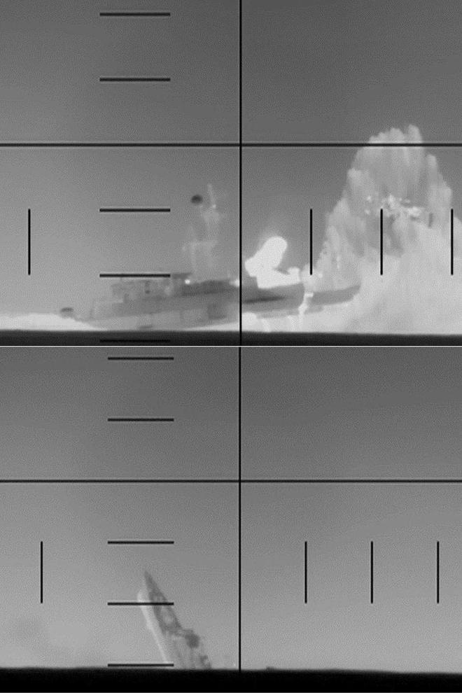 五角大楼公开了一段袭击的详细视频记录。该视频清晰地展示了300公斤重的弹头如何引发水下爆炸,导致船只迅速沉没。