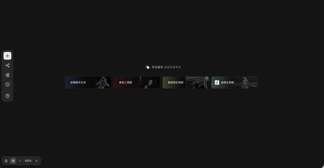 在 LibTV 的主界面,用户面对的是一个没有时间线、起点自由的画布。