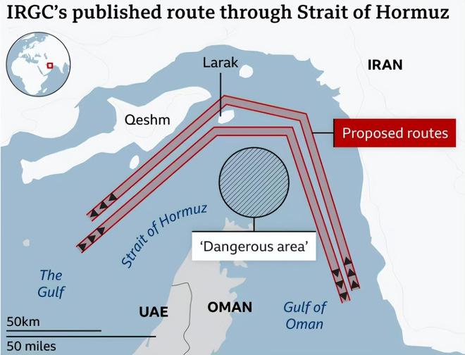 之前伊朗曾宣布海峡对商船开放,但需经由伊朗军方同意才能通行。