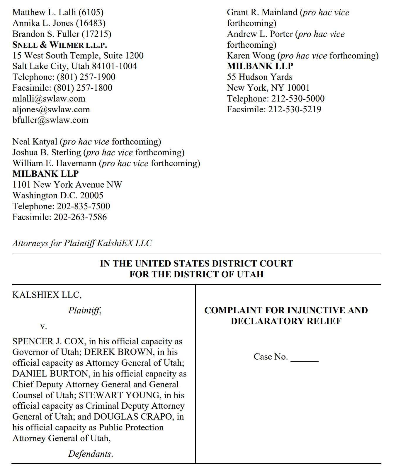 Kalshi对犹他州提起诉讼以反对这项立法。