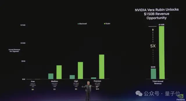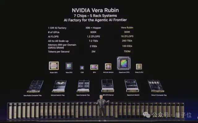在同一座1GW数据中心里,从Grace Blackwell到Vera Rubin + Groq,token生成速率从200万跳到7亿。‘
