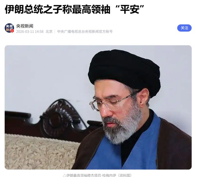 伊朗总统佩泽希齐扬之子优素福·佩泽希齐扬在社交媒体上表示,伊朗最高领袖穆杰塔巴·哈梅内伊健康状况良好。