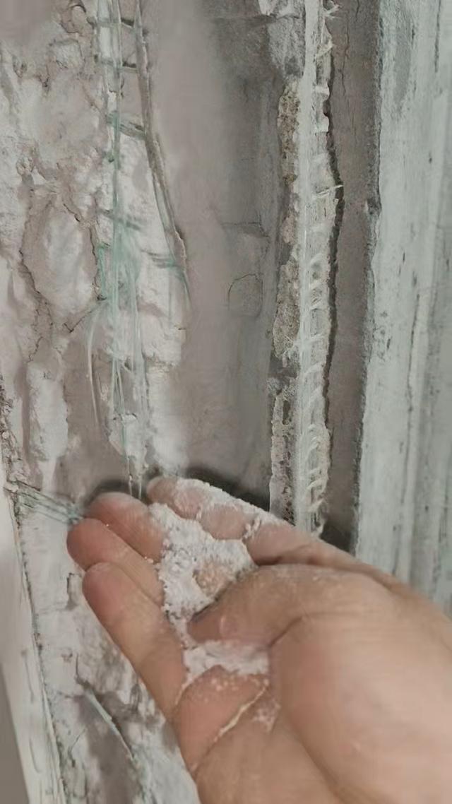 高先生说,这并非他一户的个别问题。“我们业主群里好多4号楼的住户都在说这个事,大家的墙体都有类似质量问题。”高先生表示,经过业主间沟通发现,4号楼的墙体加气块材料与小区其他楼栋明显不同,疑似存在材料选用差异,“整栋楼都有这个问题,说明不是后期使用不当造成的”。