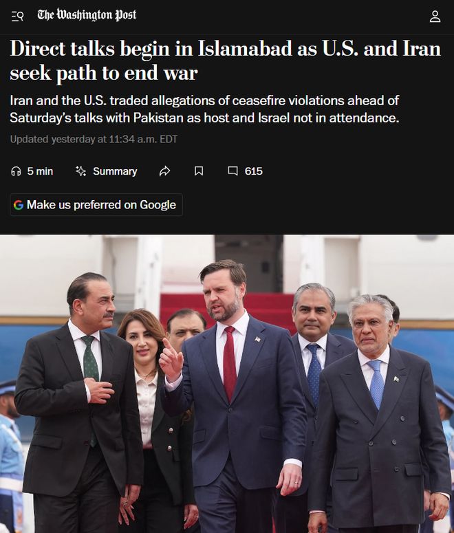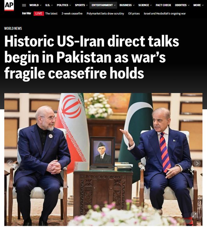 从4月11日到12日凌晨,在巴基斯坦官员的见证下,美国和伊朗代表在伊斯兰堡进行了多轮面对面会谈。美方代表团包括副总统万斯、总统特使威特科夫以及特朗普的女婿库什纳。伊方则有伊朗伊斯兰议会议长卡利巴夫及外交部长阿拉格奇参与。这是自1979年伊朗伊斯兰革命后两国高层首次直接会面。