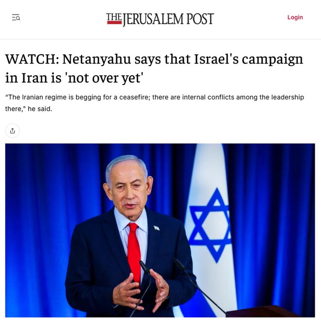 《耶路撒冷邮报》报道说,在美伊讨论潜在和平协议之际,内塔尼亚胡表示,还需要对伊朗采取更多行动。他说,以色列的目标是削弱伊朗至1979年以来的最低水平,并列出了已经摧毁的一些目标——包括钢铁工业、天然气生产设施和交通基础设施。